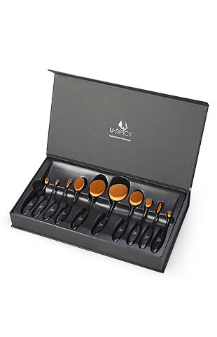 10-piece makeup brush set with amazing flexibility to perfectly adjust to the contours of your face