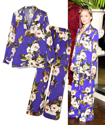 Whether it’s an embellished headband (like Nicole Richie in a Dolce & Gabbana pajama suit), heavy necklaces, stacked bracelets, or huge cocktail rings… statement jewelry is icing on the cake! These high and low jewelry pieces add that final polish to the pajama look.