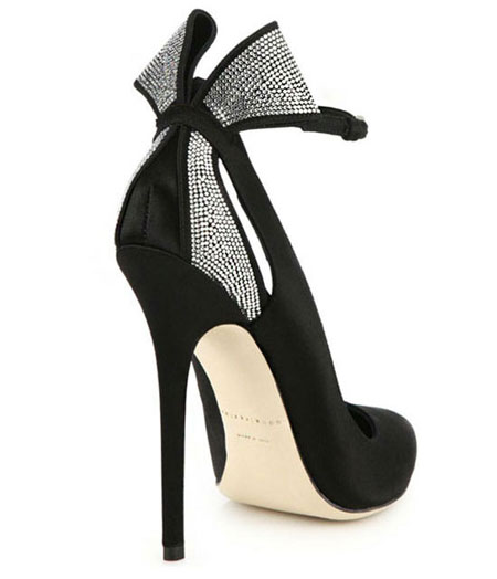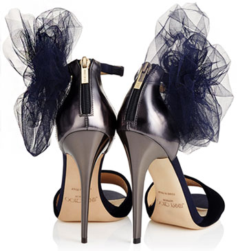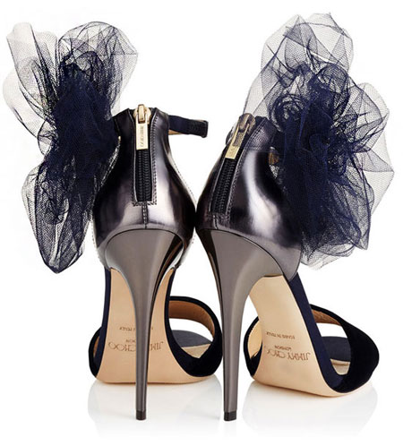These gorgeous heels each have a dramatic element in the form of a large bow, but the subdued dark hues bring the drama down enough to create a wonderfully balanced elegance that will work with any evening dress.