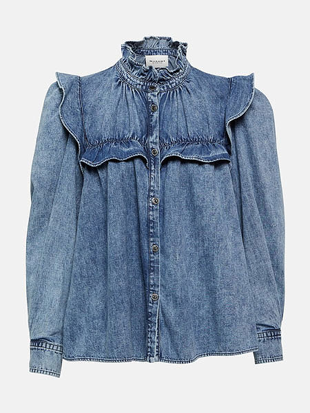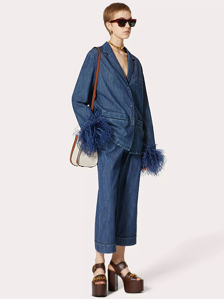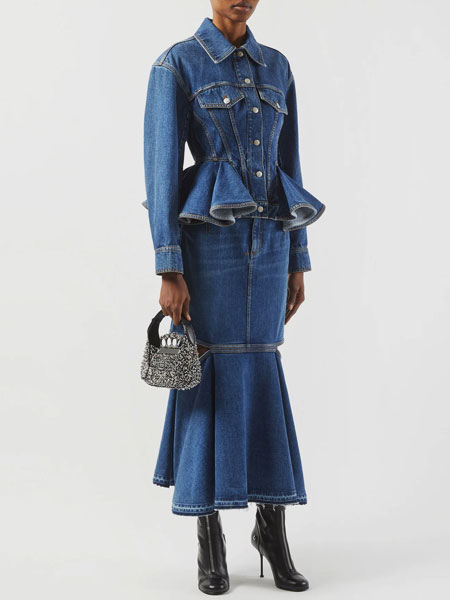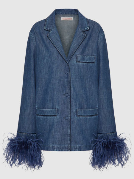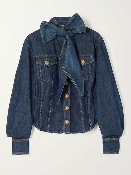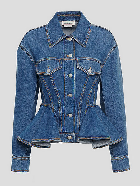 Each brand elevated the traditional denim jacket to a new maximalist level. You will see sumptous feather trim at the cuffs from Valentino, oversized pussy-bow with gold accented buttons from Balmain, and metriculously crafted peplum layers from Alexander McQueen. Here are our favorite designer denim jackets from this season.