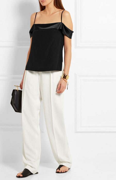 how to wear off the shoulder top - slim fit pants