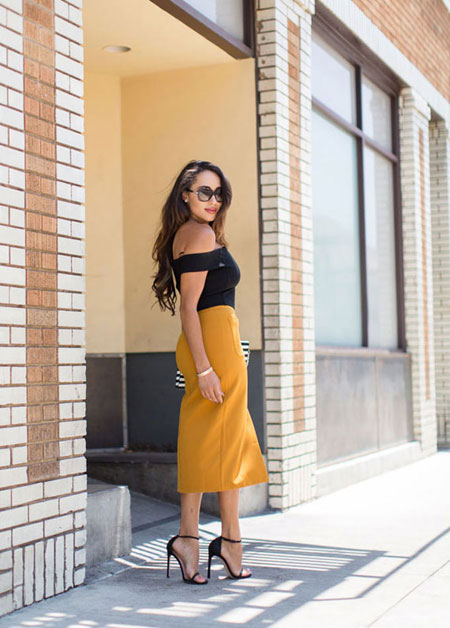 how to wear off the shoulder top - statement midi skirt