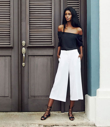 how to wear off the shoulder top - white culottes