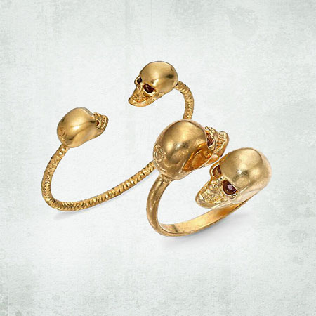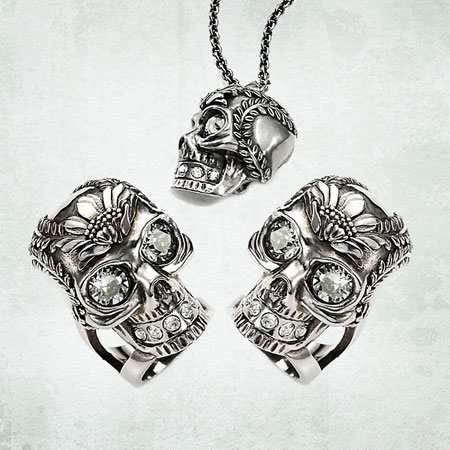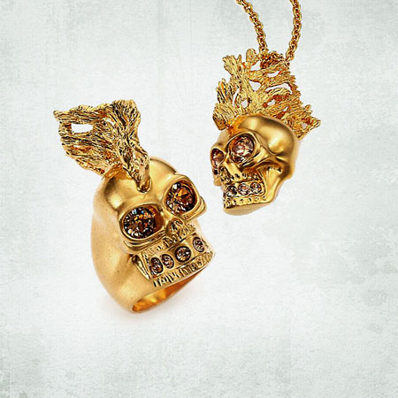 Their famous skull jewelry collection is a classic example of how something that symbolizes mortality can also look feminine, exotic and gorgeous. These stunning jewelry pieces – necklaces, bracelets and rings – are decorated with different sizes of Swarovski crystals. Just look at the impeccably detailed carving.