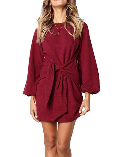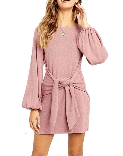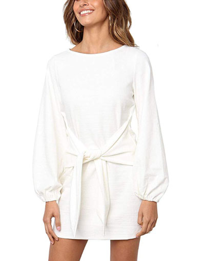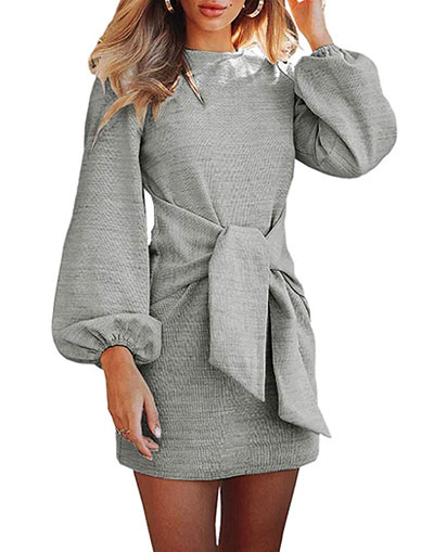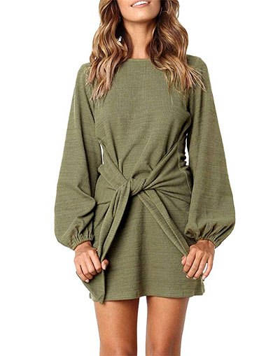 This comfy yet chic dress has all the elements to flatter any body type! The tie at front is perfect to make your waist look smaller and cover any stomach you want to hide. Plus, the mini length adds some fun and edginess.
