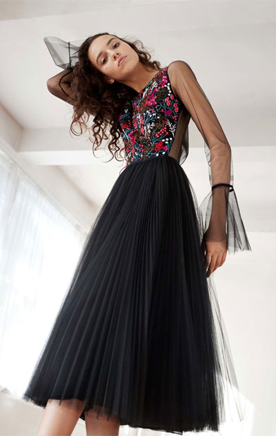 The must-have? This V-neck cocktail dress with mesmerizing floral embroidery