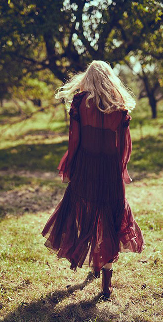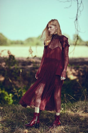 MatchesFashion recently shared a beautiful bohemian-inspired lookbook for Chloe’s Fall 2016 collections and we are in love!. Each look showcases a Flowy and effortless style – the essence of a distinctly Chloe girl. We especially have a big style crush on the burgundy midi dress with floral-smocked shoulders in sheer silhouettes.