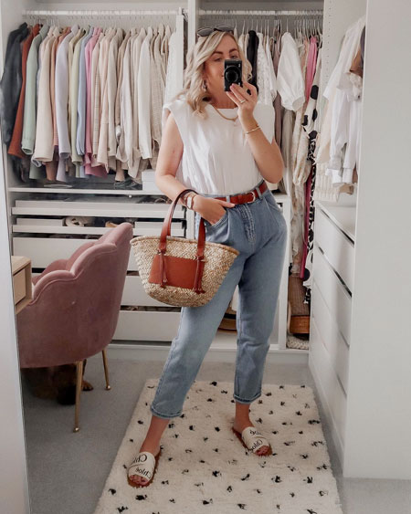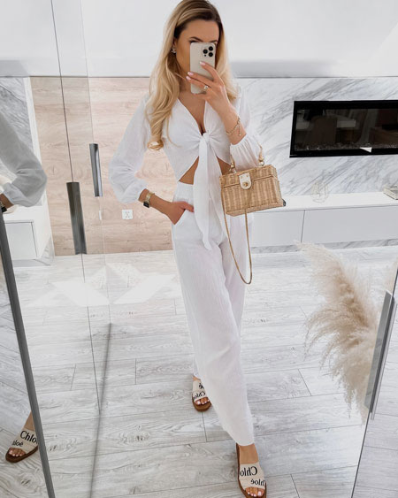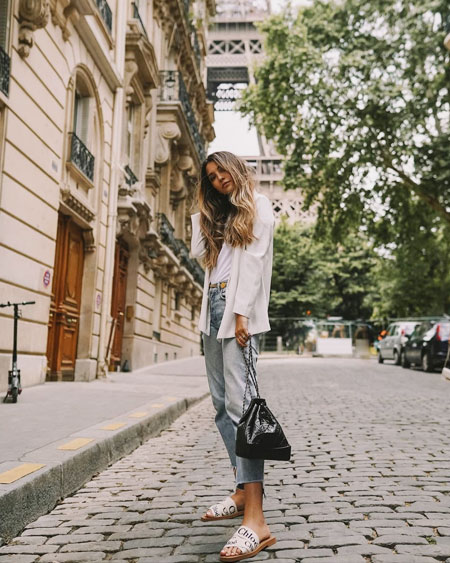 They are made of sturdy canvas straps with the brand’s logo. These are so beautiful and will go well with any outfit whether it’s just a simple white dress or a tshirt-and-jean combo. Here are 20 outfit ideas on how to wear Chloe Woody slides this Summer.