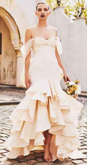 Johanna Ortiz just introduced her first-ever wedding dress collection, and we are drooling over them! You can clearly see the Colombian designer’s re-interpretation of her signature style: elegantly exaggerated ruffles. Amazing! Simply, amazing.