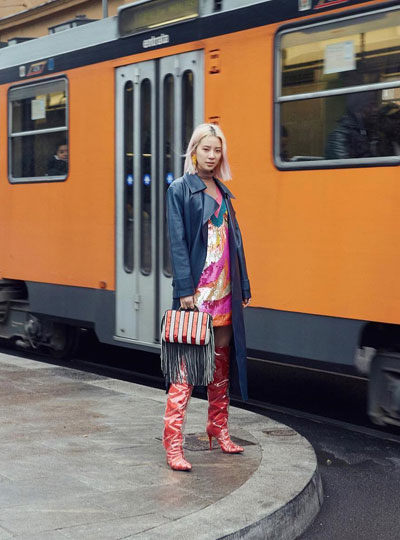 Wear it with a little black dress to make the bag stand out… or go maximal all the way as you are about to see from fashion girls below: