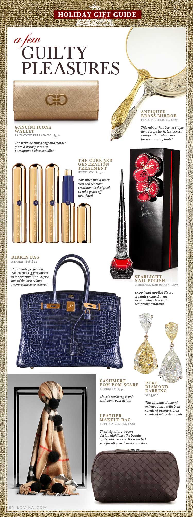 This is especially true when it comes to Christmas gift ideas. From a timeless Burberry scarf with a bit of flare to the ultimate Hermes Birkin bag, here are a few things any woman would love to have. When your significant other has trouble deciding what to get you, just tell them to choose anything from any of our Lovika lists!