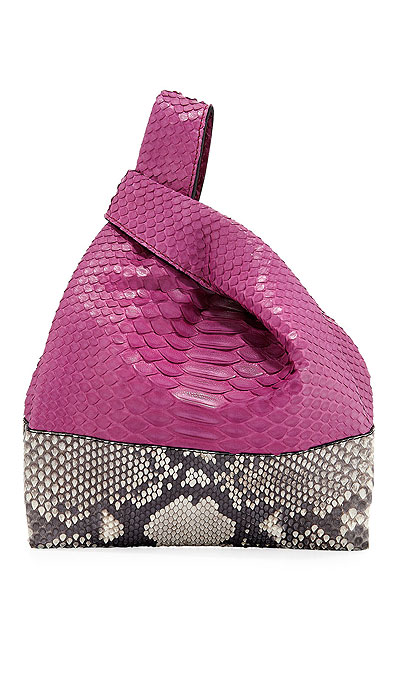 If you are a minimalist, these latest tote bags will fit your style craving. Designed by Hayward, all of them come in the iconic shape, mixed with glossy patent leather or exotic python patterns in simple color block.
