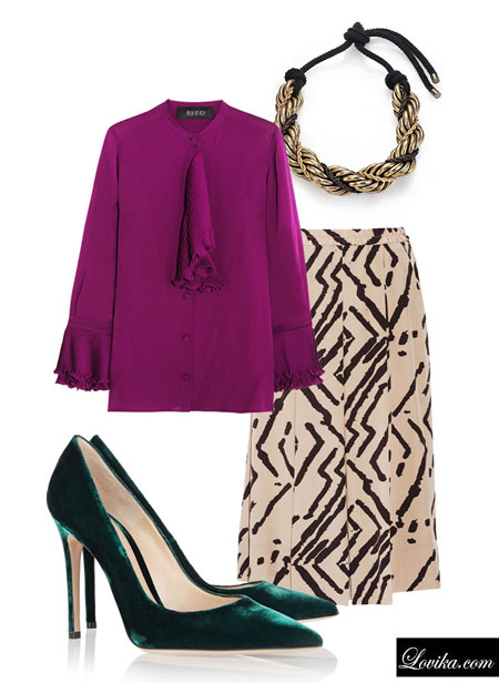 It’s never too early to think about what to wear for hosting holiday events. Here, we put together 4 outfits perfect for such an occasion. Each one showcases how to look glamorous with a few richly colored accents. The key here is to be adventurous without being gaudy.