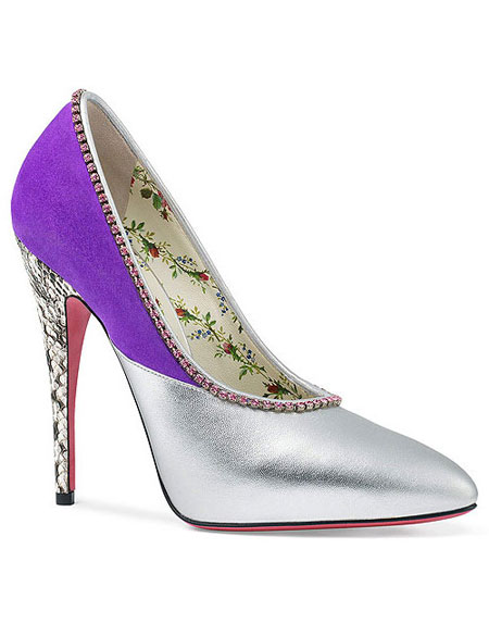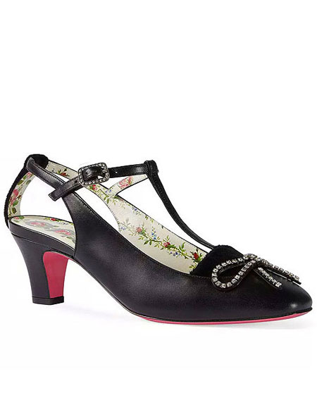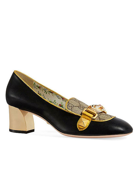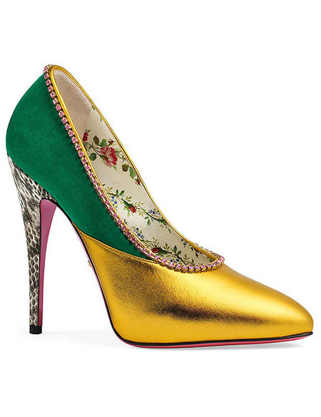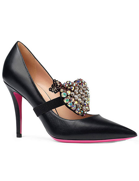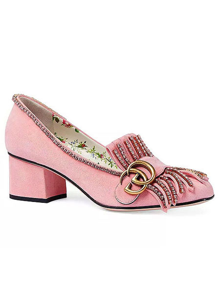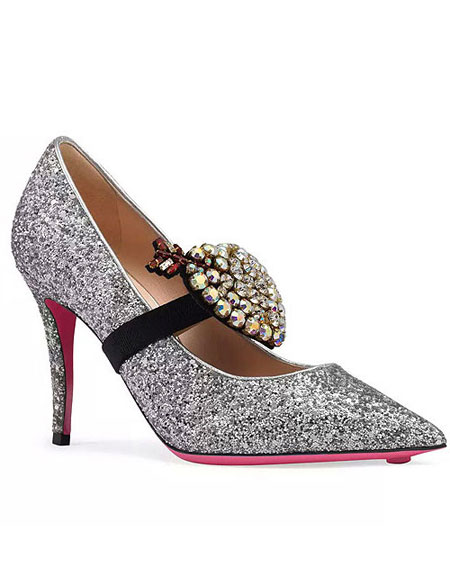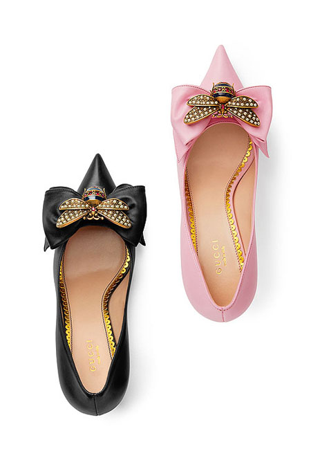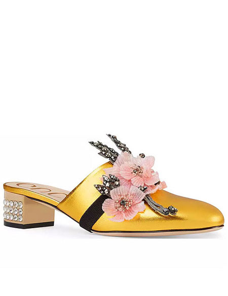 Continuing from our recent post about Gucci’s new handbags from the Resort 2018 collection, this post is all about their shoes. There are a number of beautiful (and yes, still fun and eccentric) shoes, especially the new mules and pumps with detachable embellishments in the collection. Here are our favorite shoes from Gucci’s Pre-Spring 2018 (each is easily a must buy):