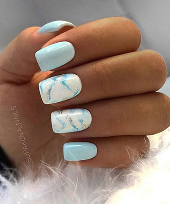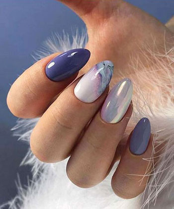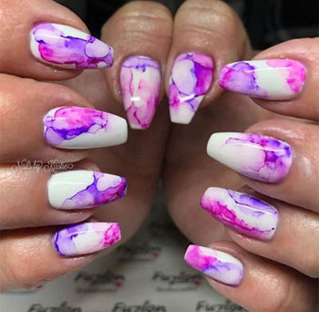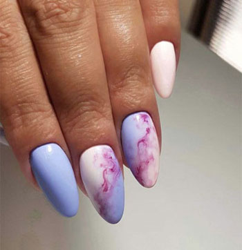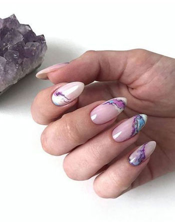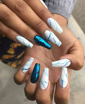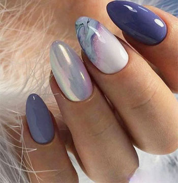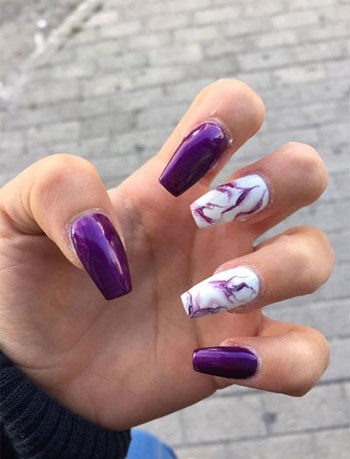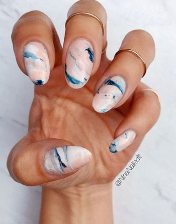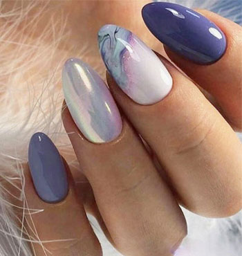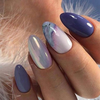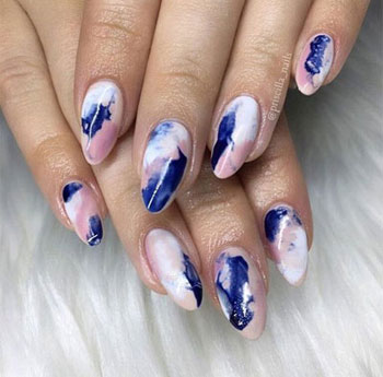 Marble-inspired nail designs are one of those ideas that are timeless, regardless of the season. If you are into subtle effects, you can’t go wrong with pastel pink and water marble nail art. If you want something more dramatic, you will love navy or purple coffin nails that are destined to make a statement.