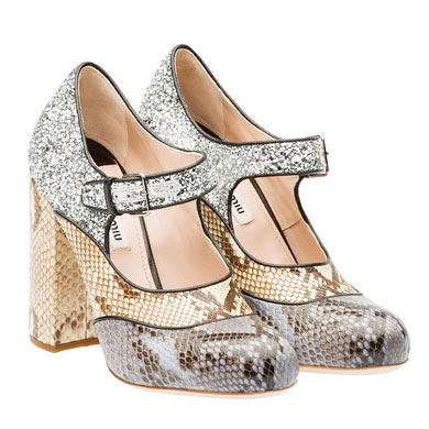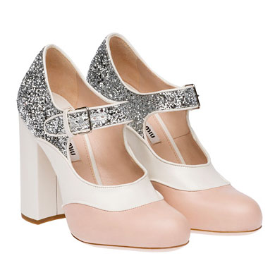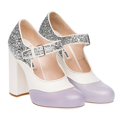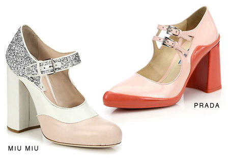 Both pumps have the classic Mary Jane style with mid-straps. The heels designed by Miu Miu have sparkly straps to add a bit of flair to otherwise plain pumps. The one from Prada is more modern and futuristic with brightly contrasting rubber soles.