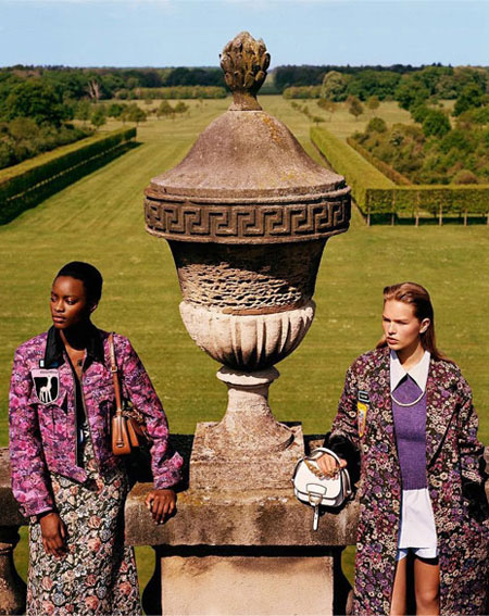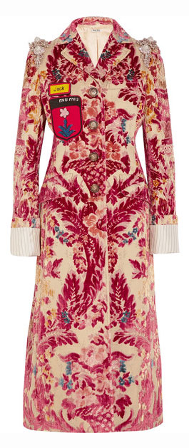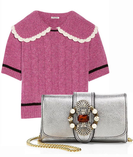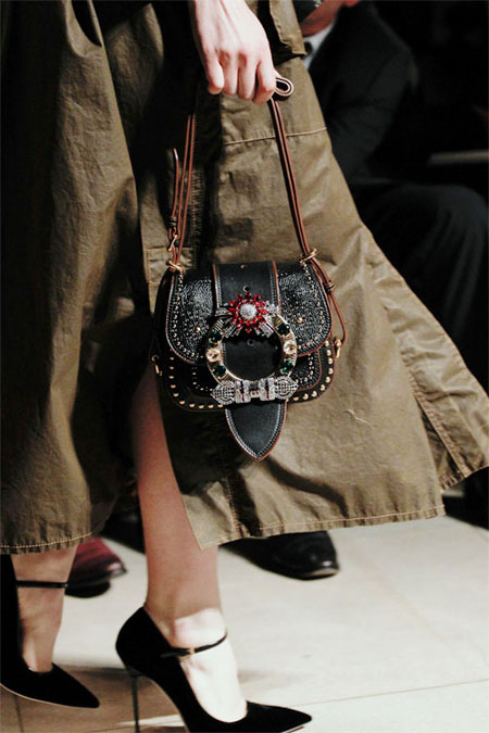 Pearl-embellished fuzzy slides, a pink sweater with lace-trimmed oversized collar, and an ornate coat patterned with purple raspberry leaves and saffron florals – Miu Miu’s Fall 2016 collection is a big hit this season. At first sight the collection reminds us of romanticism with princess-like Victorian hues and decorative elements. But looking up close, it’s all about the eclectic details from jewel-encrusted bag straps to velvet lace-up boots with lavishly designed back-bow that makes Miu Miu’s collection so unique and refreshing.
