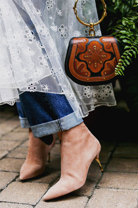 Kitten heels are BIG this Fall. And this is great news for many of us who want comfy breaks between those high heels days. What you’ll also love about this season’s take are the pointy toes and shiny accents that give kitten heels a luxe-modern edge. Featured on Bergdorf Goodman‘s latest editorial, we find these kitten heels are just right for making beautiful outfits.