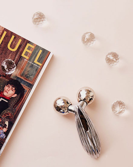 The two rotating balls are specifically angled (70 degrees to be exact) in a way that when it’s rolled onto your skin, it replicates a gentle pinching and lifting sensation to maximize circulation and stimulate your skin and the muscles below.