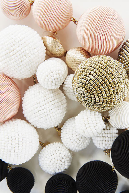 The spherical drops are made of corded silk threads, tiny bead-embellishments, or the combination of both. These surprisingly light-weight drop earrings are made by hand in India and are unique accessories worth adding to your jewelry collection.