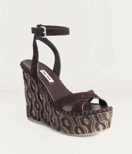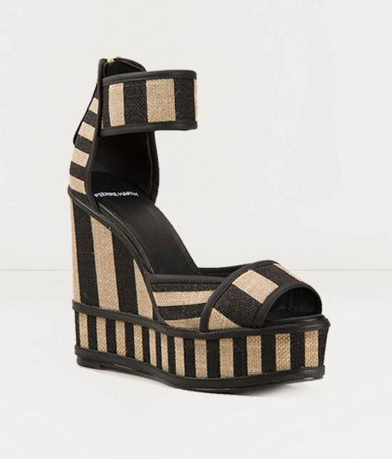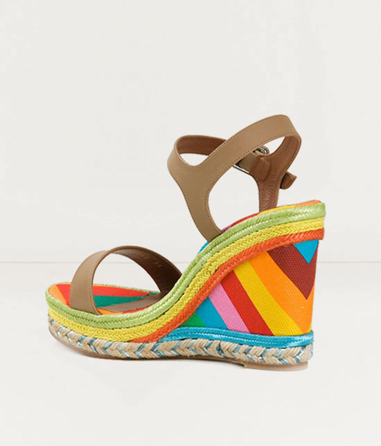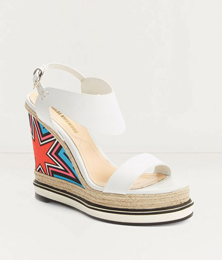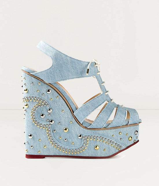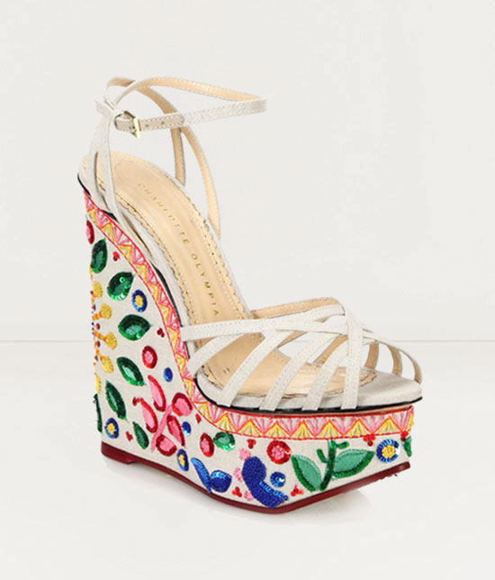 The latest take on wedges are with higher and more decorative platforms, often including studs, jewels, and geometric patterns.