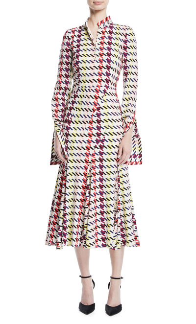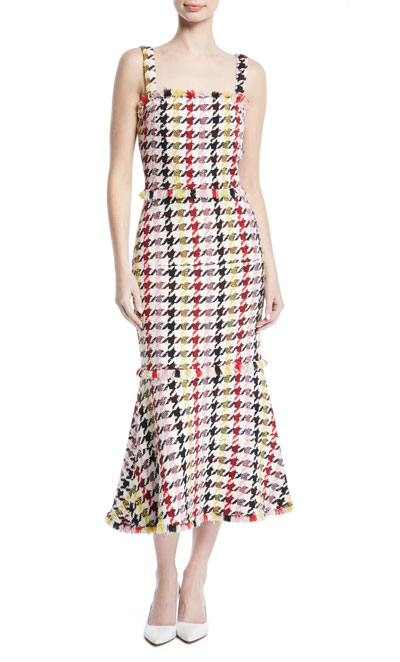 This is one of the first dresses that stood out from Pre-Fall 18 collections. Designed by Oscar de la Renta, we think the brand made us fall in love with houndstooth patterns all over again. The color combos, cuts, and silhouettes – This dress has it all!