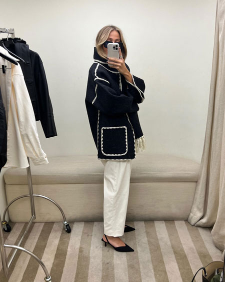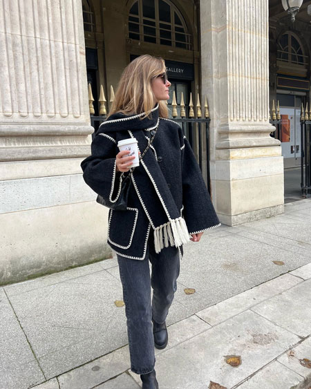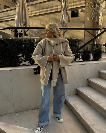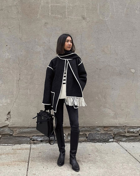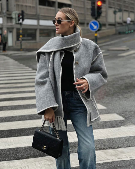 Each piece is beautifully crafted together and the boxy cut finalizes the sophiscated look. We found so many stylish outfits from fashion girls wearing the Toteme scarf jackets, but these 15 outfits are on the top of our list.