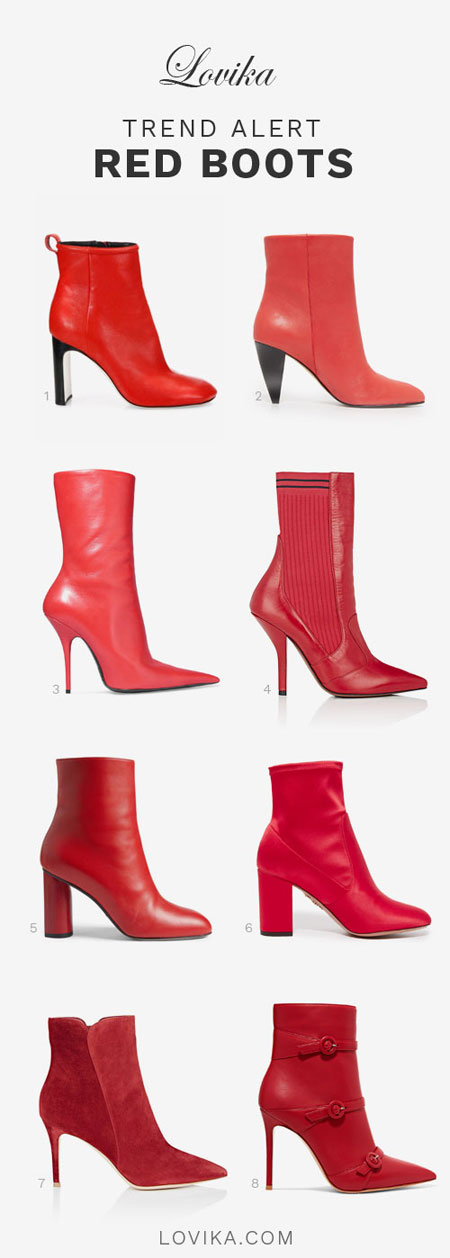 Now that you know how street stars wear red boots this season, we hand-picked some of our favorites that look ultra-stylish. If you want to go with knee-high, you won’t regret the pair from Fendi (featured on multiple models on the Fall runway). Otherwise, there are endless options of gorgeous ankle boots to rock this Fall. Plus, for anyone looking for longer legs, this bootie is the must!