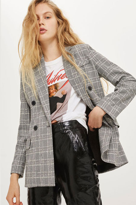 The 80’s are making a big comeback this season. Oversized blazers with checked patterns are spotted everywhere from street stars to celebrities. When it comes to styling for today’s world, we love pairing it with a turtleneck tucked in a mini skirt or just a simple slip dress for an ultra chic vibe. (Be sure to check out our favorite street style looks in oversized blazers.)