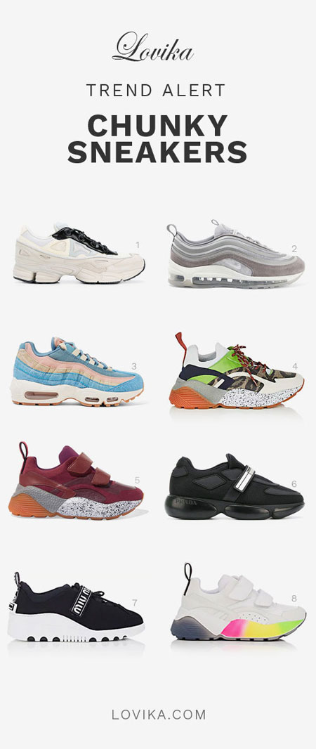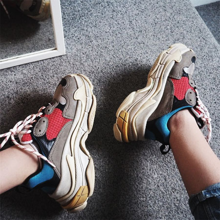 80’s big chunky (aka “ugly”) sneakers are making a HUGE comeback. Fashion girls are styling with midi to mini skirts, yoga pants, or any way you can think of with the hi/low mix.