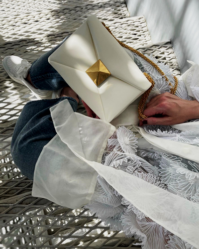 If you were a big fan of Valentino’s Roman stud bags, this new collection is the icing on your cake. Accented with single oversized spiked stud on the center, the bag showcases the elegant simplicity with an envelope silouette. It comes in 7 beautiful colours, but we think emerald blue stands out the most.