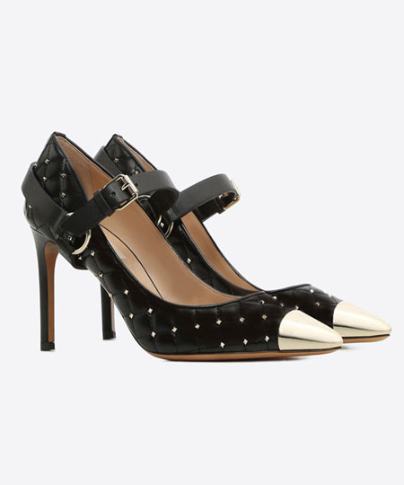 If you love Valentino’s edgy matelassé handbags, you can now have the exact same style on your feet! Valentino recently introduced new Mary-Jane pumps that are the part of Garavani’s Rockstud spike collection.